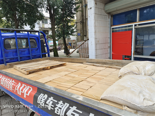 12月13日上午10點(diǎn)左右,開(kāi)發(fā)區(qū)一新客戶(hù)急匆匆來(lái)說(shuō)單位鍋爐檢修,要在中午下班前送一件刀口型耐火磚(每件648塊)1和5袋耐火泥。我們趕快一邊找車(chē),一邊請(qǐng)客戶(hù)單位轉(zhuǎn)帳。不巧的是叉車(chē)壞了,臨時(shí)找肯定耽擱時(shí)間。自己搬!說(shuō)干就干。50塊、100塊、200塊……,3個(gè)人不到半個(gè)小時(shí)就裝好了。將托盤(pán)也帶上車(chē)直奔開(kāi)發(fā)區(qū),到廠里工人師傅們還沒(méi)下班,正好下貨檢修使用。車(chē)間主任十分感謝,并說(shuō)剛上班報(bào)到廠里的進(jìn)貨計(jì)劃還沒(méi)下班就到了,真快。